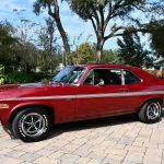 The 1972 Chevrolet Nova, an emblem of classic American engineering, seamlessly melds power, engineering, and elegance into a captivating experience. With its precise specifications and meticulously crafted features, this classic car stands as a symbol of an era that prioritized both performance and refined design. Beneath the hood, the 1972 Nova houses a robust 5.7-liter (350 cubic-inch) V8 engine—a powerhouse emblematic of Chevrolet’s dedication to both power and reliability. The 350c.i. V8 engine delivers an exquisite blend of torque and horsepower, embodying the Nova’s dual identity as a high-performing machine and a reliable companion on the road. Aligned with the engine is an automatic 3-speed transmission, thoughtfully selected to optimize the driving experience and complement the V8’s capabilities. The transmission’s gear ratios align seamlessly with the engine’s characteristics, providing smooth gear changes and an engaging ride. Whether navigating through urban streets or cruising on highways, the Nova delivers a harmonious balance of power and comfort. The exterior of the 1972 Chevrolet Nova boasts an elegant maroon finish—a color choice that speaks of both sophistication and the era’s design sensibilities. The Nova’s exterior design features sleek lines and contours that meld aesthetics with aerodynamic functionality. The maroon exterior not only exudes a timeless appeal but also resonates with the car’s dynamic personality. Stepping into the cabin, the black interior surrounds you with an environment that balances comfort and driving-focused ergonomics. The black color scheme extends seamlessly from the seats to the dashboard, offering both visual appeal and practicality. The Nova’s interior layout emphasizes a driver-centric design, in line with the era’s commitment to delivering a connected and controlled driving experience. Having covered a mere 7,956 miles, this Nova stands as a testament to its history and minimal use. The low mileage reflects the care and preservation that the car has received over time, encapsulating its enduring charm. The 1972 Chevrolet Nova encapsulates an era where vehicles represented a fusion of engineering and design finesse. Its 5.7L 350c.i. V8 engine, automatic 3-speed transmission, maroon exterior, and black interior coalesce to capture the essence of an era that prized both performance and aesthetics. As you grasp the wheel and experience the V8’s power at your command, you’re not merely driving; you’re immersing yourself in the legacy of a classic car that continues to inspire technical admiration and reverence among automotive enthusiasts.